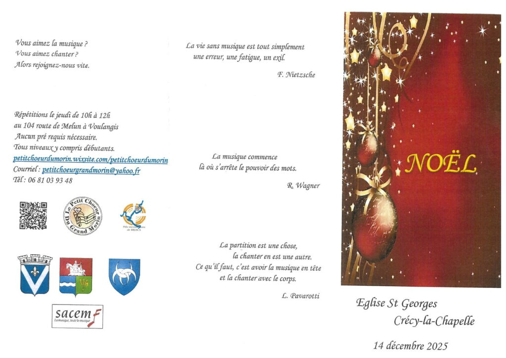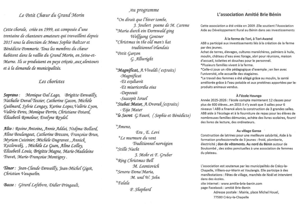 Concert de Noël du Petit Chœur du Grand Morin au profit de l’Association Amitié Brie Bénin, le 15 décembre 2025