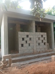 En cours de finition, deux cabines pour les femmes, deux pour les hommes, fermées par des portes métalliques.